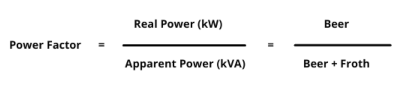 To help understand, we can use a well-known analogy of a glass of beer. The thirst-quenching liquid portion of the beer represents real power (kW). The non-drinkable portion, the froth, represents reactive power (kVAR).